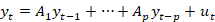, represent four-by-four dimensional coefficient matrices. The intercept has been dropped for expository purposes. The reduced-form VAR model representation is