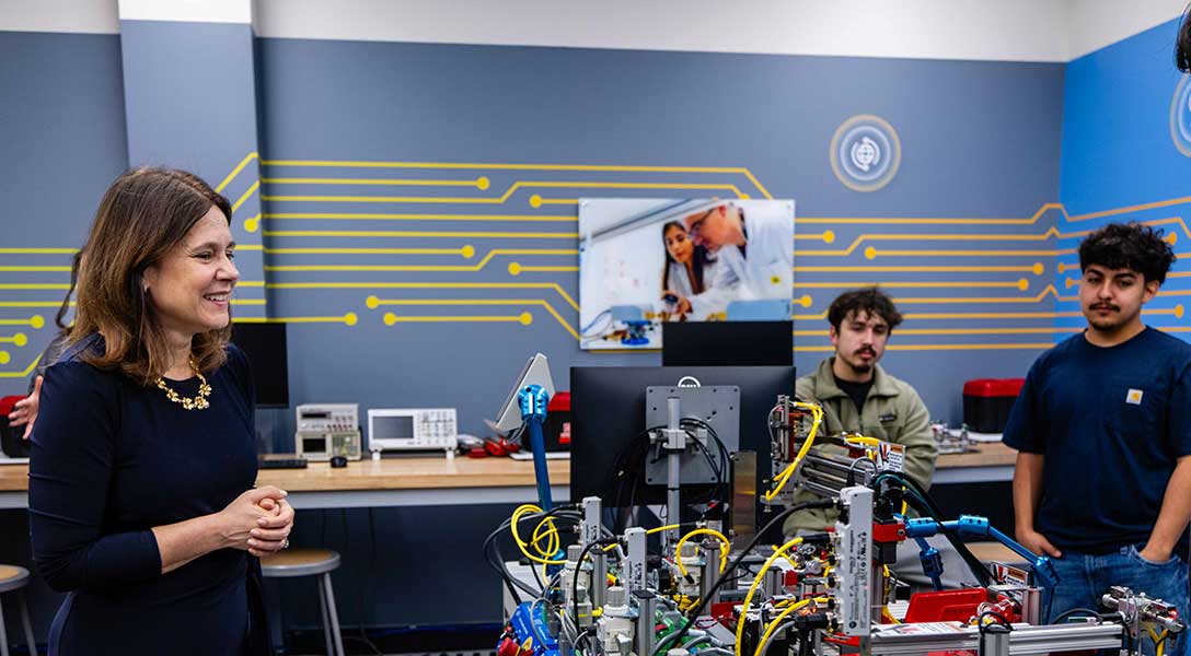 Dallas Fed President Lorie Logan tours the Innovative Manufacturing Partnerships Accelerating Central Texas (IMPACT) Lab at Austin Community College.
