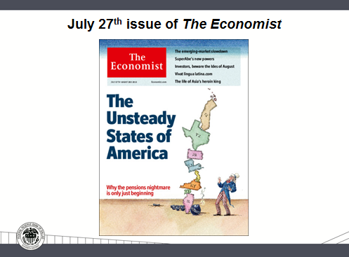 Your anxious predicament—somehow untying the Gordian Knot of underfunded state retirement systems—is summarized for the lay reader in this week’s cover article in the Economist magazine.