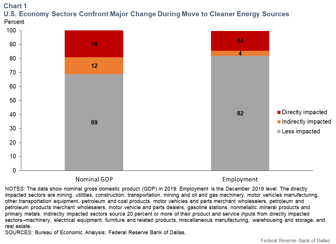 We find that the energy transition potentially affects sectors that account for 31 percent of U.S. gross domestic product (GDP) and 18 percent of employment. Because this represents a substantial share of economic activity, central banks need a deep understanding of the implications of this structural change as part of monetary policy deliberations.