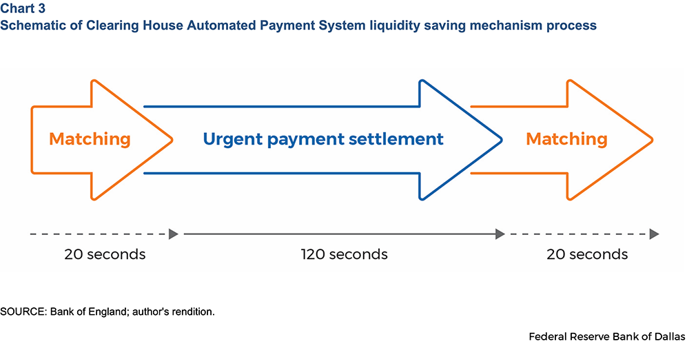This process is repeated throughout the day. Following the mechanism’s introduction in 2013, the Bank of England estimated the mechanism resulted in a 20 percent reduction in intraday liquidity costs among clearing participants.