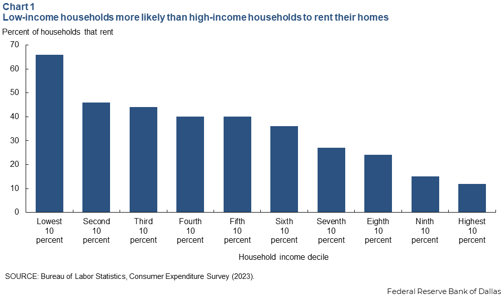 Low-income households do not commonly have $29,000 in available cash (apart from the tax credit) for the up-front cost of installation. Even if they did, these households are more likely to rent rather than own their housing, which means they often do not have the option to install solar panels even if they had the money (Chart 1).