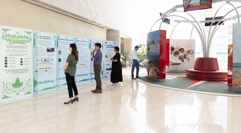 Can't visit the Dallas Fed in person? Tour our Economy in Action exhibit on your mobile device or computer. You'll learn about the importance of a stable and healthy financial system and the roles the Federal Reserve and the public play in the economy.